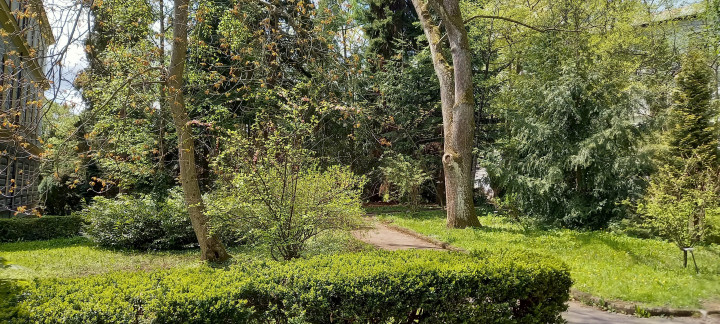 comprising, for example, the Giant Sequoia, Lebanese cedar, and others. The garden is nowadays still in a continuous process of further development. Its area is 3,55 hectares and it consists of the ´lower´ and the ´upper´part, situated on a slope and divided by road. Only one part of the garden is open to public, serving as a free-access city park.