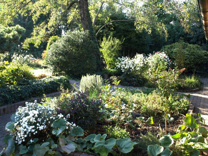 rozširujeme záhony s ružami - v súčasnosti z 23 druhov ruží (mnohé s označením ADR - vysoko odolné ruže) tvoria najväčšie zastúpenie bielokvitnúce: Innosencia, Diamant, Hella, Baby Schneewitchen, Memoire, La perla, Ice princess, Madame Anissette, Ivory Drift.. okrem ruží aj iné bielokvitnúce druhy ako Gaura, Veternica, Veronika, Černuška, Cínie - opticky presvetľujú záhony a poľahky ich nájdu aj nočné opeľovače.