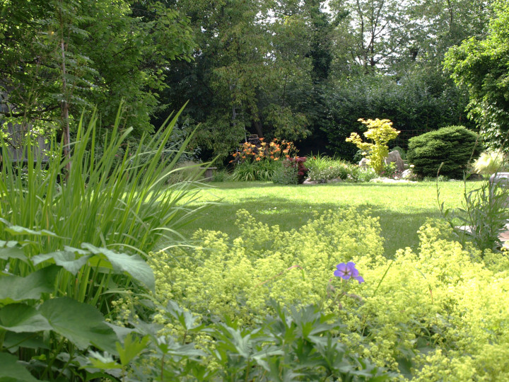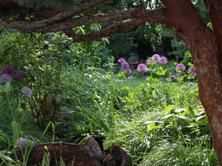Zaujímavosť:kombinujeme a umožňujeme rásť nielen kultúrnym- ale aj divokým rastlínám bežne sa vyskytujúcim aj v okolí- čím sa s ním záhrada harmonicky prepája. Odpadové drevo a rôzne konáre- má ďalšie použite ako menovky, opory a konštrukcie k rastlinám, s trochou fantázie dotvorením vznikajú umelecké doplnky... aj kameň použitý na stavbu kamenného oporného múrika, jazera - je lokálny, z okolia.