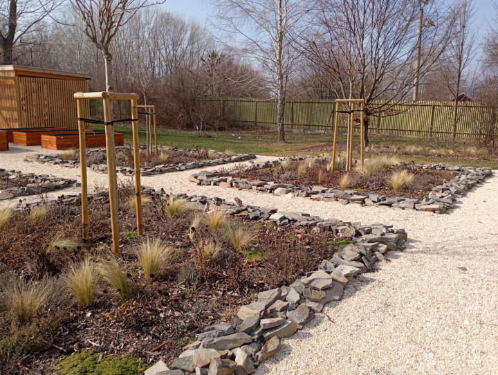 Zaujímavosť:Adaptačné a mitigačné opatrenia, zelené riešenia: zrekonštruovaná budova vodárne s vlastnou studňou, dažďová záhrada, strešná záhrada, čiastiareň odpadových vôd, koreňová čistiareň, klimatické ihrisko, záhrada a ovocný sad doplnený o množstvo zelene a jedlých kríkov a náučný priestor pri administratívnej budove – altán pre vonkajšiu výučbu obklopený trvalkovou záhradou, vyvýšenými záhonmi na pestovanie zeleniny a ovocia, políčka pre pestovanie obilnín a hľuzovitých plodín a samozavlažovacie kvetináče s liečivými bylinami, solárne osvetlenie, nabíjačka pre elektrobicykle, terén s ďalšou zelenou výsadbou a bezbariérovým prístupom.