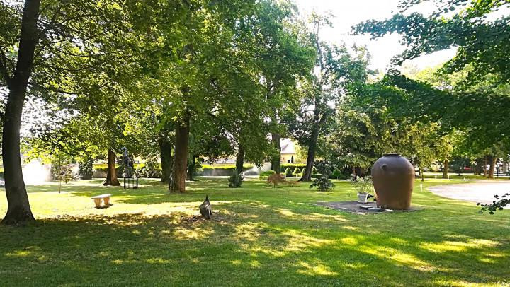 Zaujímavosť:okrem pôvodných drevín (, napr. platany, gingko, tulipánovník) dnes nájde návštevník parku aj rôzne prvky záhradnej architektúry, karytídy, fontánu, drevené plastiky, umelecký prvky z kameňa a kovu, ale aj neprehliadnuteľné pávy