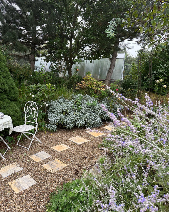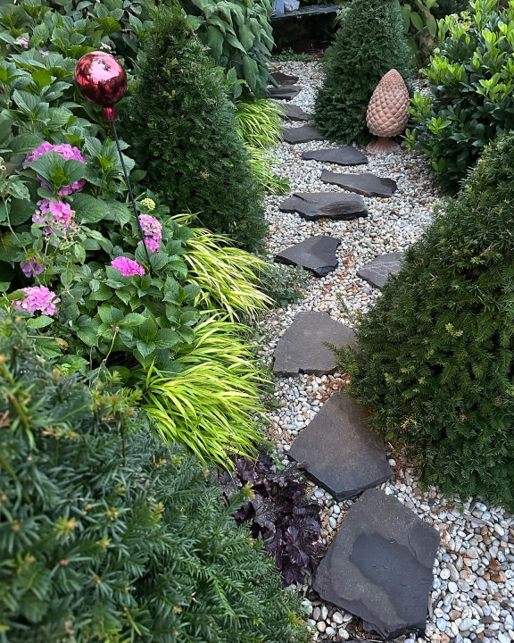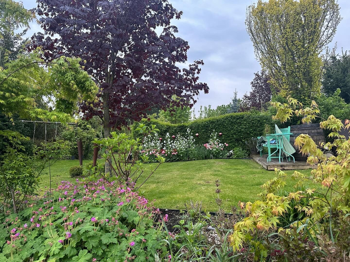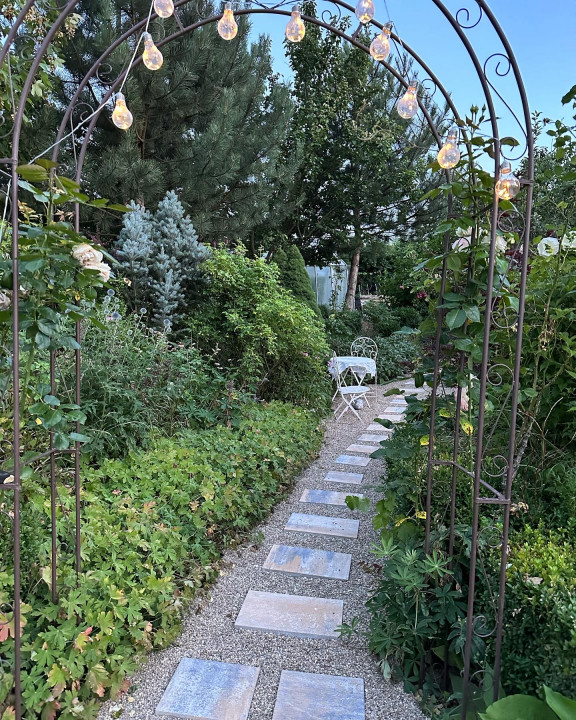 Rodinná záhrada pri rekonštruovanom dome zo 70 rokov. Záhradu pretváram 15 r. postupne z vlastných zdrojov a svojpomocne. Snažím sa ukázať ľudom, že zahrada má byť plna zelene, v súlade s prírodou a zároveň môže vyzerať pekne a upravene. V záhrade sa snažím uplatniť prvky prirodnych záhrad.