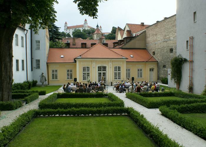 Nachádza sa pri neskoro barokovom paláci kniežaťa Leopolda de Pauli, správcu kráľovských majetkov. Tento palác bol postavený v rokoch 1775-76 na mieste staršieho kráľovského domu. Je to jediný palác okrem prepoštského paláca na Kapitulskej ulici, ktorý mal v 18. storočí pravidelné nádvorie a priľahlú väčšiu záhradu. V tom čase v záhrade vybudovali barokovú prízemnú budovu tzv. Hudobný pavilón, v ktorom usporadúvali koncerty a záhradné slávnosti. Záhrada je rekonštruovaná v abstraktnom geometrickom náznaku pôvodnej barokovej symetrickej kompozície, ktorej podoba sa detailnejšie nezachovala.