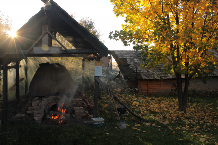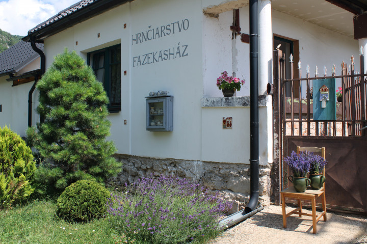 English summary:Hájske pottery is located in a narrow valley between the highlands of the Slovak Karst. The pottery garden is open to visitors, it is used for relaxation, but also for work. There are two kilns for firing ceramics in the yard.