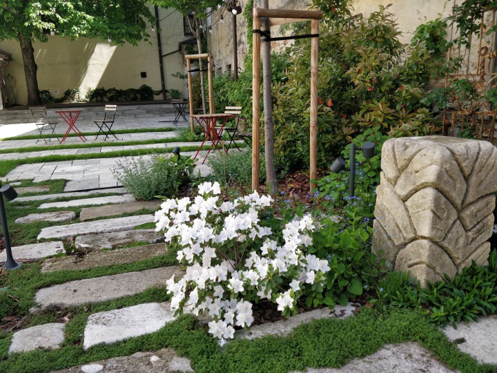 Dom Albrechtovcov je vznikajúcim kultúrnym centrom v srdci historickej Bratislavy. Záhrada bola založená v auguste 2019 ako súčasť exteriéru centra. Snažíme sa v nej spojiť praktické a okrasné funkcie. Slúži ako auditórium pre verejné umelecké podujatia, preto je kombináciou priestorov pre sedenie publika a záhonov s okrasnými kvetmi a drevinami.