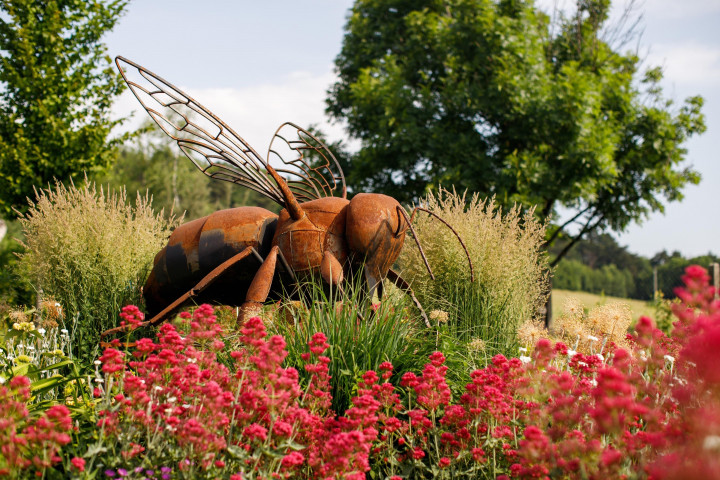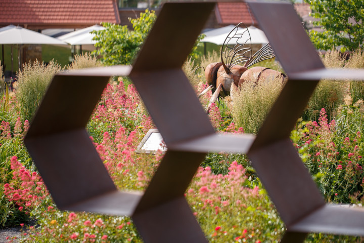 Zaujímavosť:Tématika včelomilných rastlín popretkávaných umelecko remeselnými prvkami: trvalkový labyrint, včelí tanec, peľové zrná, hmyzí hotel, včelie obydlia, dutý strom, bylinkový záhon, monument včela, veľký včelí plást, a ďalšie